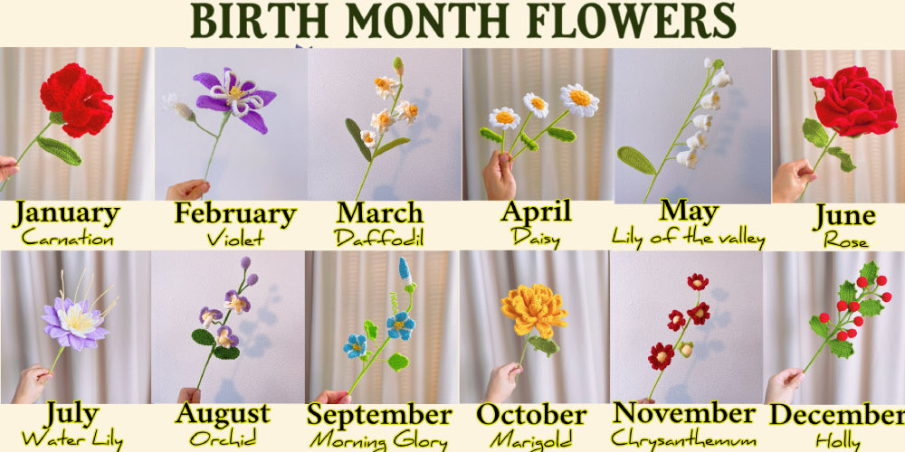 September Birth Month Morning Glory Birthday Bouquet - Handcrafted Hooked Single Stem Crochet - Ideal for Garden Lovers or 9th Month Celebrations