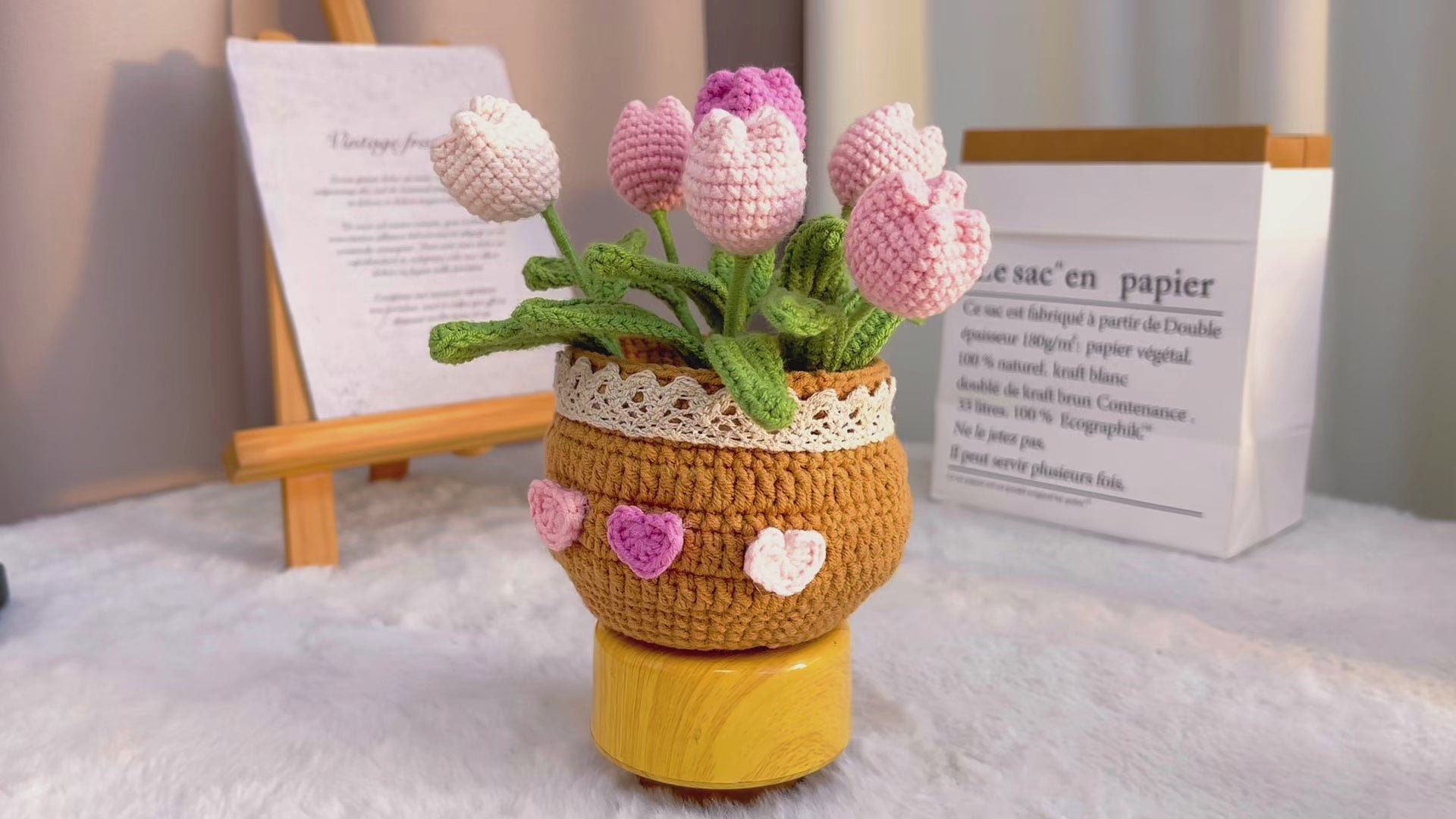Handmade Crochet Tulip Planter - Hypoallergenic Floral Home Decor- Perfect for Housewarming, Mother's Day & Spring Gifts