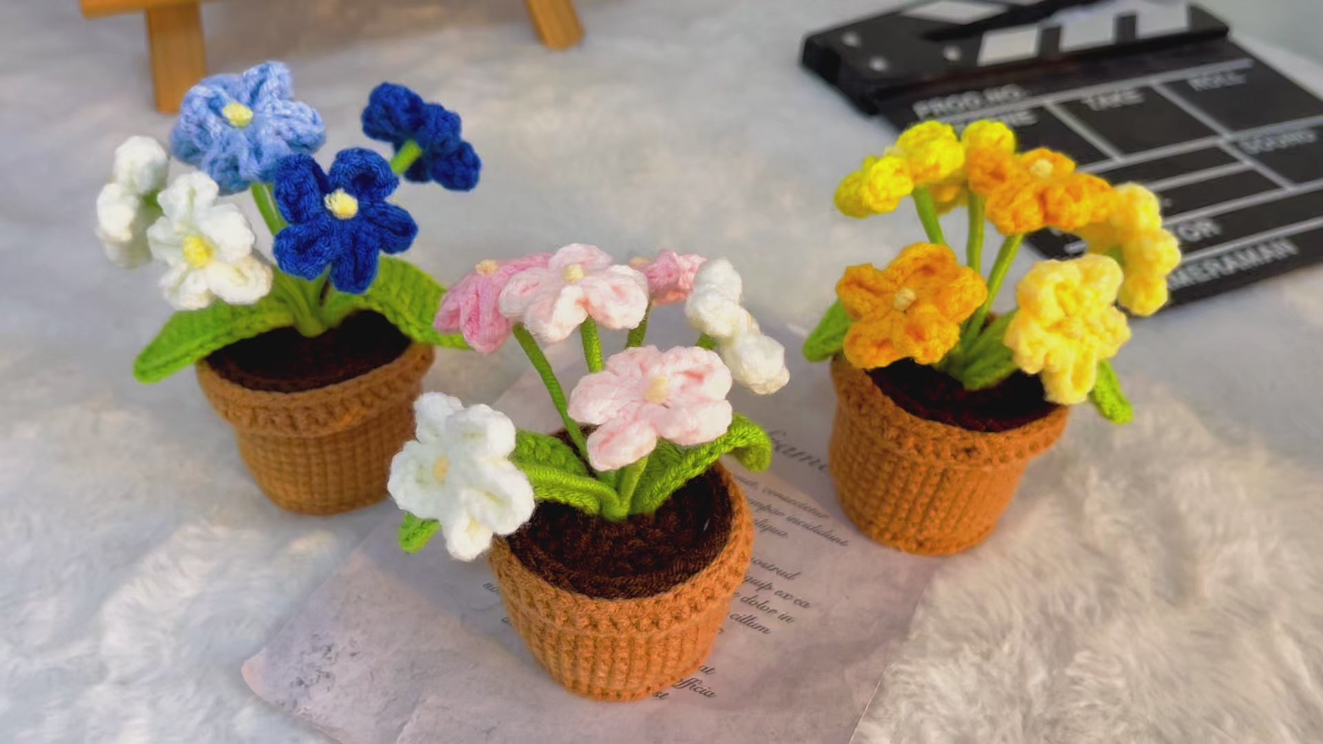 Handcrafted Gradient Color Forget-Me-Not Potted Planter - Unique Crochet Flower Pot, Home Decor, Eco-Friendly Gift for Garden Lovers, Perfect for Birthdays, Anniversaries, and Special Occasions