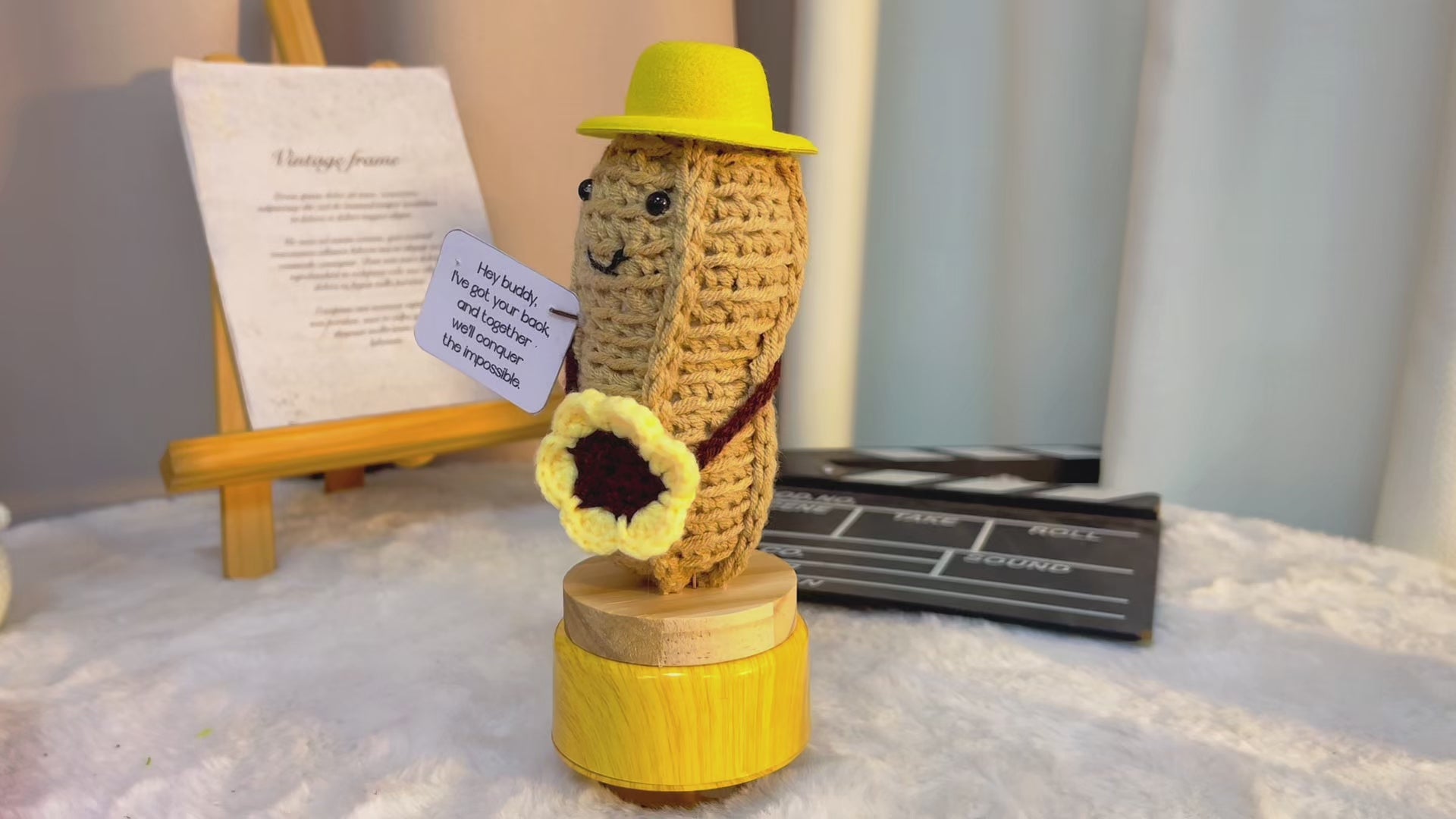 Introducing our delightful Amusable Peanut Supportive Plushie, a charming addition to any home decor. This unique piece features a cheerful beige peanut character adorned with a sunny yellow round-brimmed hat. On the left side, you’ll find a customizable card that reads, “Hey buddy, I have got your back, and together we will conquer the impossible.” Tailor this message to suit your personal touch, making it an ideal gift for friends and loved ones.