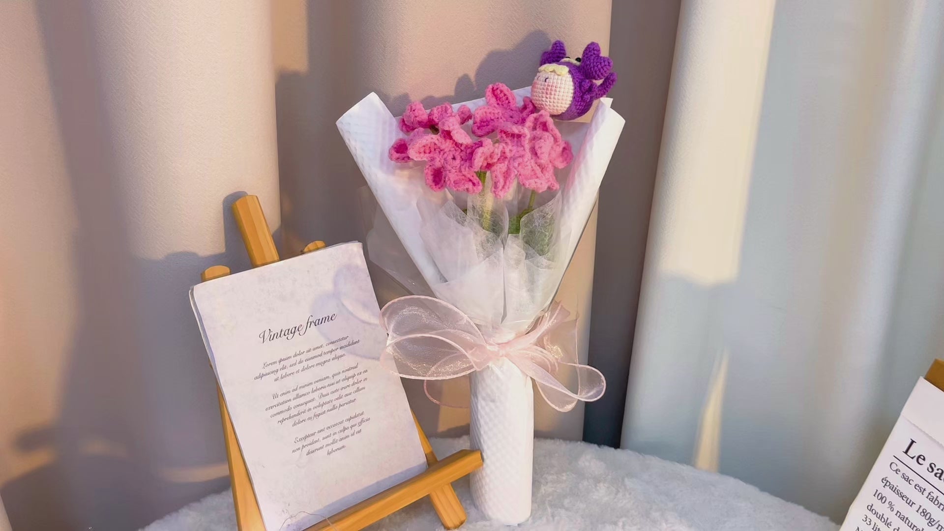 Celebrate the passionate Scorpio spirit with our enchanting handmade crochet geranium bouquet featuring bold fuchsia blooms, paired with an intriguing scorpion plush doll. This captivating arrangement comes elegantly wrapped in crisp white gingham paper, perfectly embodying Scorpio’s intense and magnetic nature—100% hypoallergenic & pollen-free for sensitive souls.