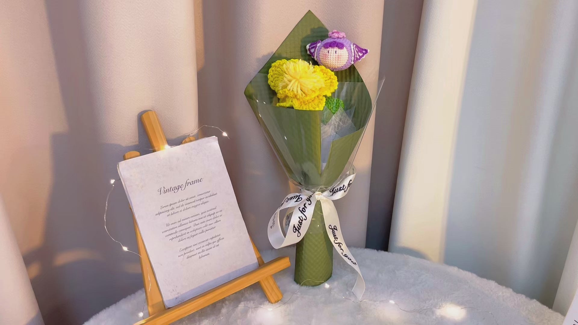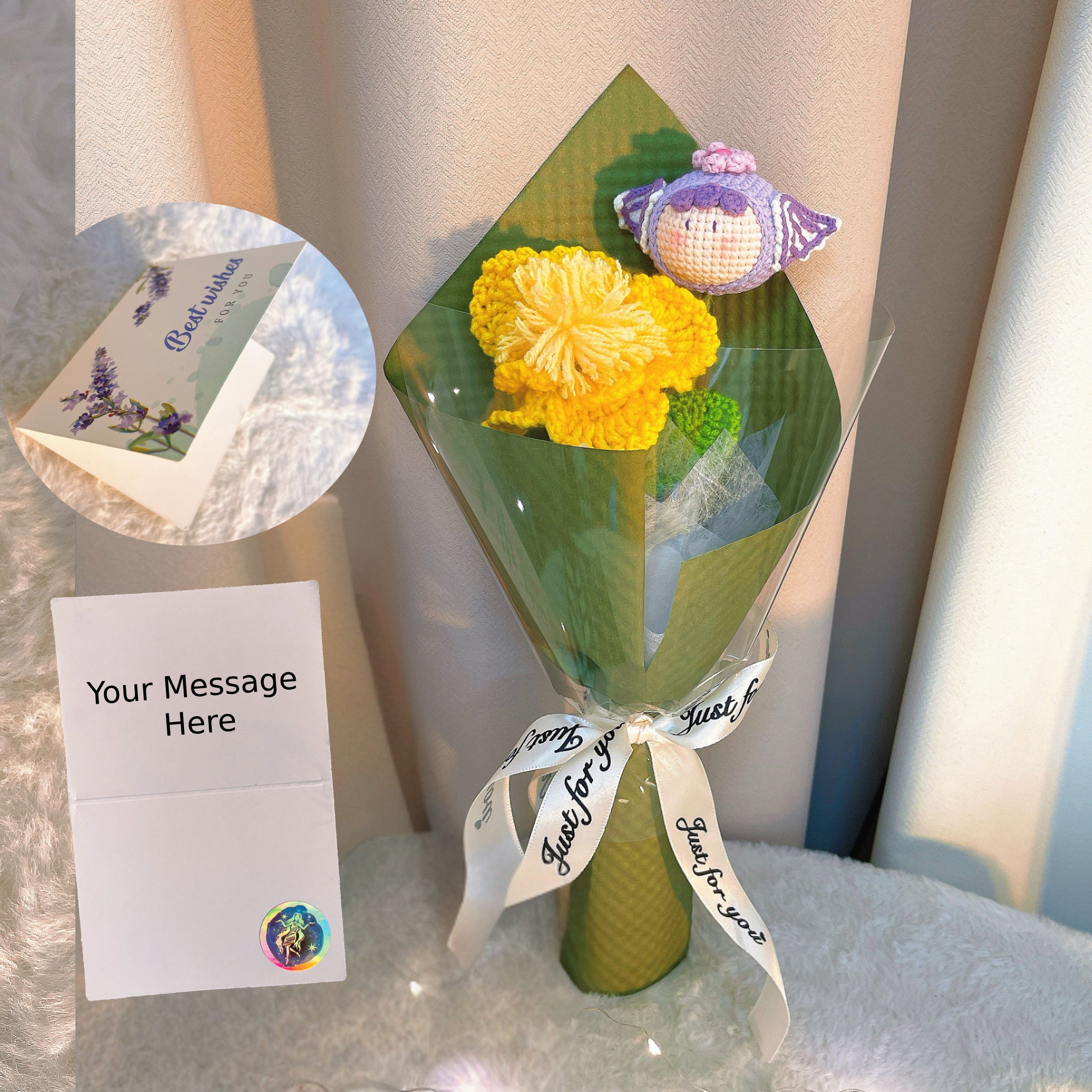 Virgo's Perfect Bloom: Handmade Crochet Buttercup Bouquet with Plush Doll