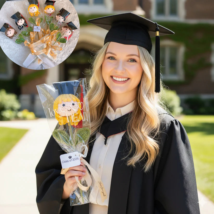 Celebrate academic milestones with this charming handmade crochet graduation bouquet! Each piece features: