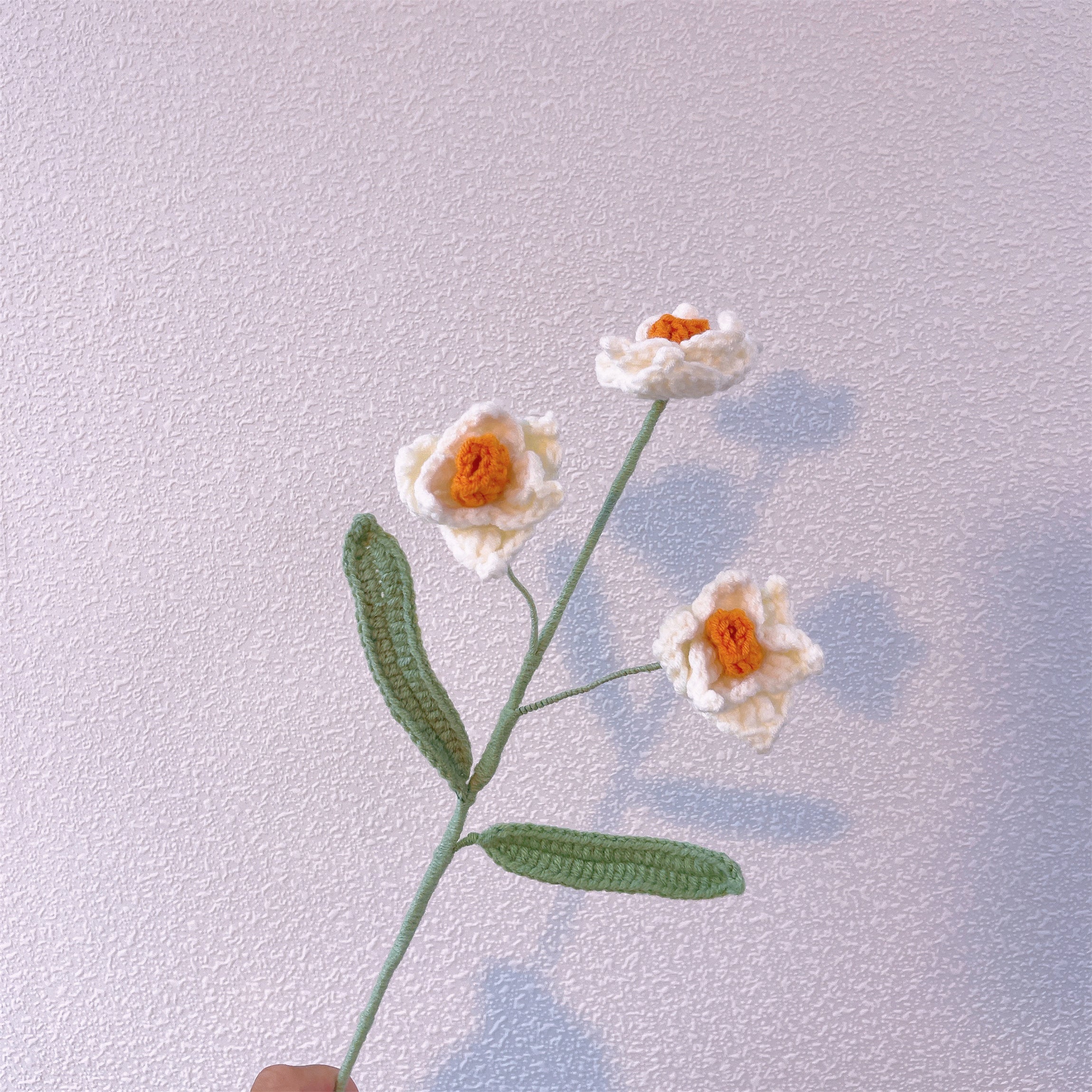Each bloom is meticulously crafted from high-quality yarn, ensuring that this bouquet remains vibrant and fresh without the worry of allergies that real flowers can provoke. Wrapped in elegant white netting and enhanced with a bright yellow finish, along with charming white English newspaper accents, this bouquet is not only a feast for the eyes but also a testament to thoughtful design.