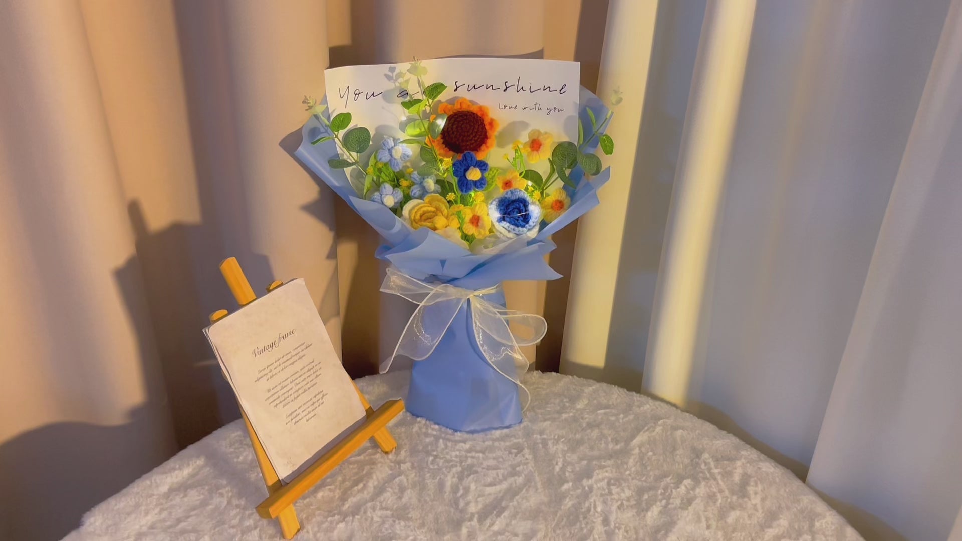 Don't miss the opportunity to share the joy and beauty of the Luminous Joy handmade crocheted flower bouquet. Order yours today and let its radiant blooms convey your heartfelt sentiments and bring a luminous touch to any special moment.