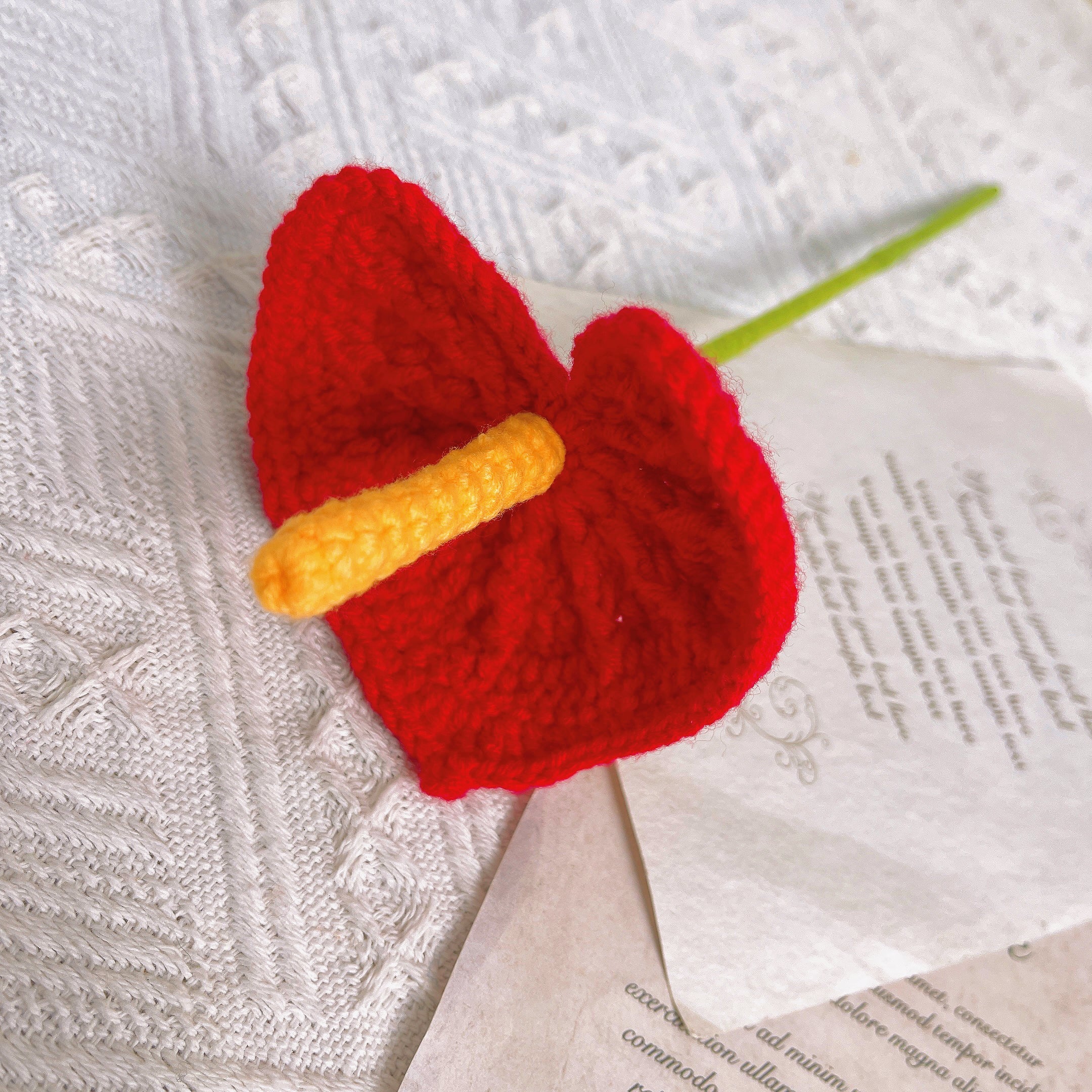 Handmade Crocheted Red Anthurium: A Symbol of Prosperity and Joy