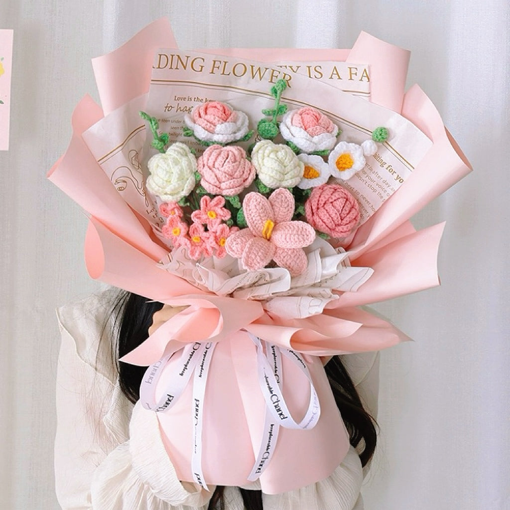 Assorted Handmade Whole Crochet Bouquet Floral Arrangement, Graduation Gifts, Unique Gift Idea for Hay Fever, Mother's Day, Father's Day Gift, Visiting Confession Apology