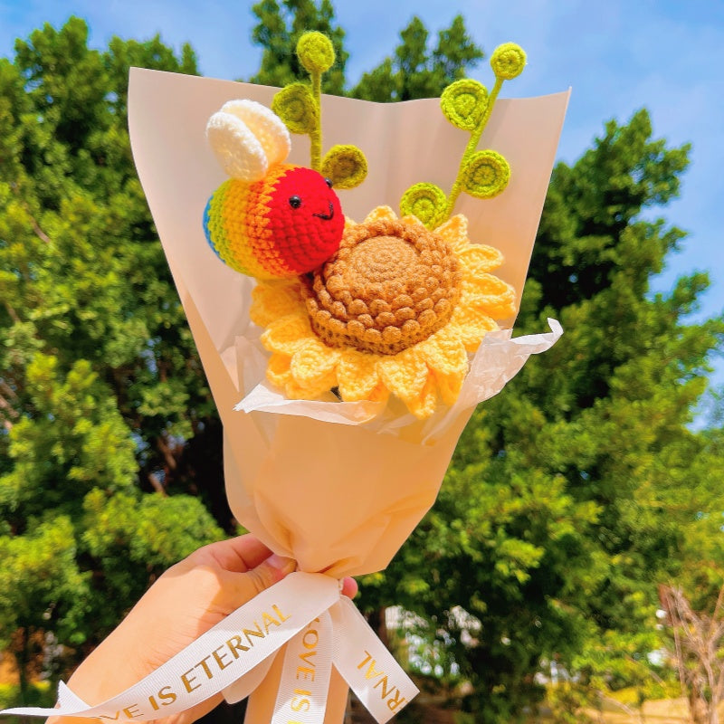 Handmade Crocheted Spring Theme Bouquet of Sunflowers, Eucalyptus Leaves, and Colorful Bee - A Unique GIFT for Any Occasion