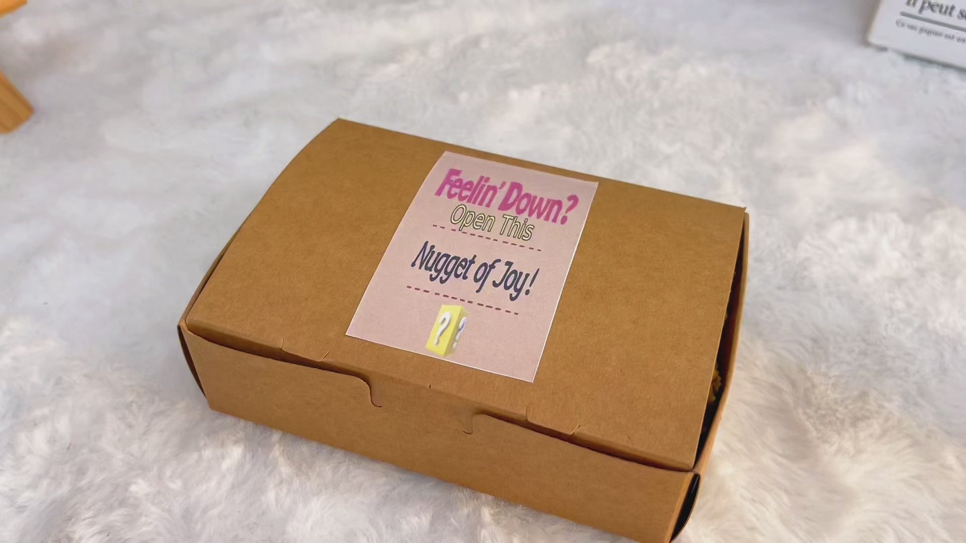 - Charming Takeout Box: Comes in a stylish takeout box adorned with a cheerful sticker that reads, “Feelin' Down? Open this Nugget of Joy!” It's perfect for gifting or display.