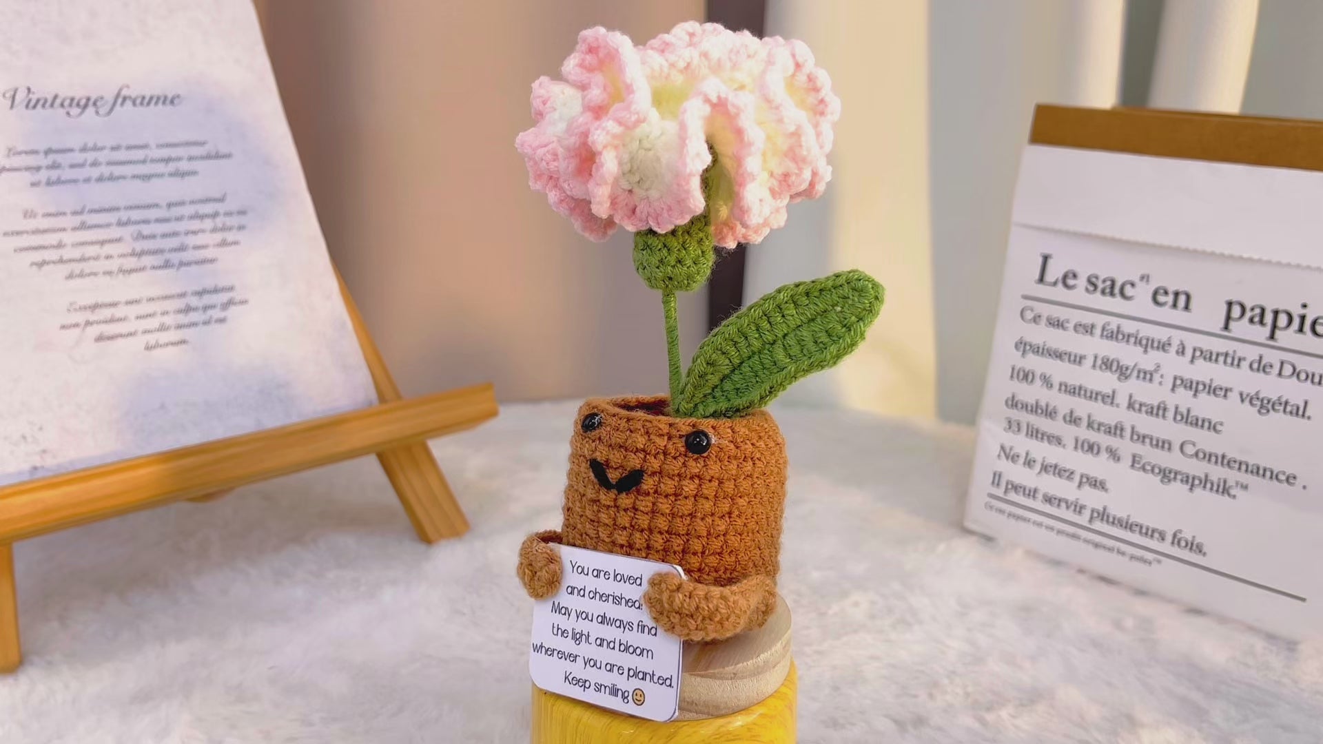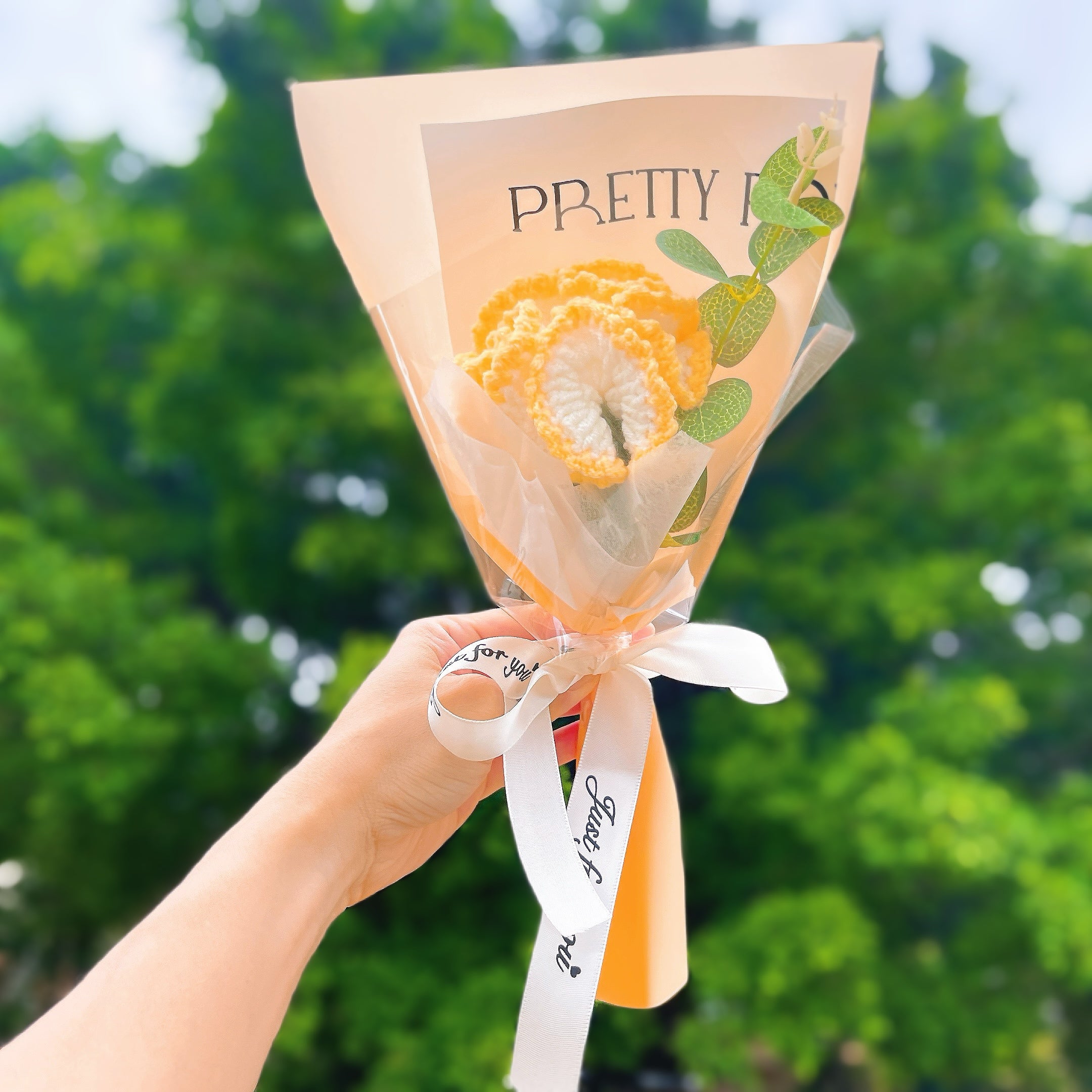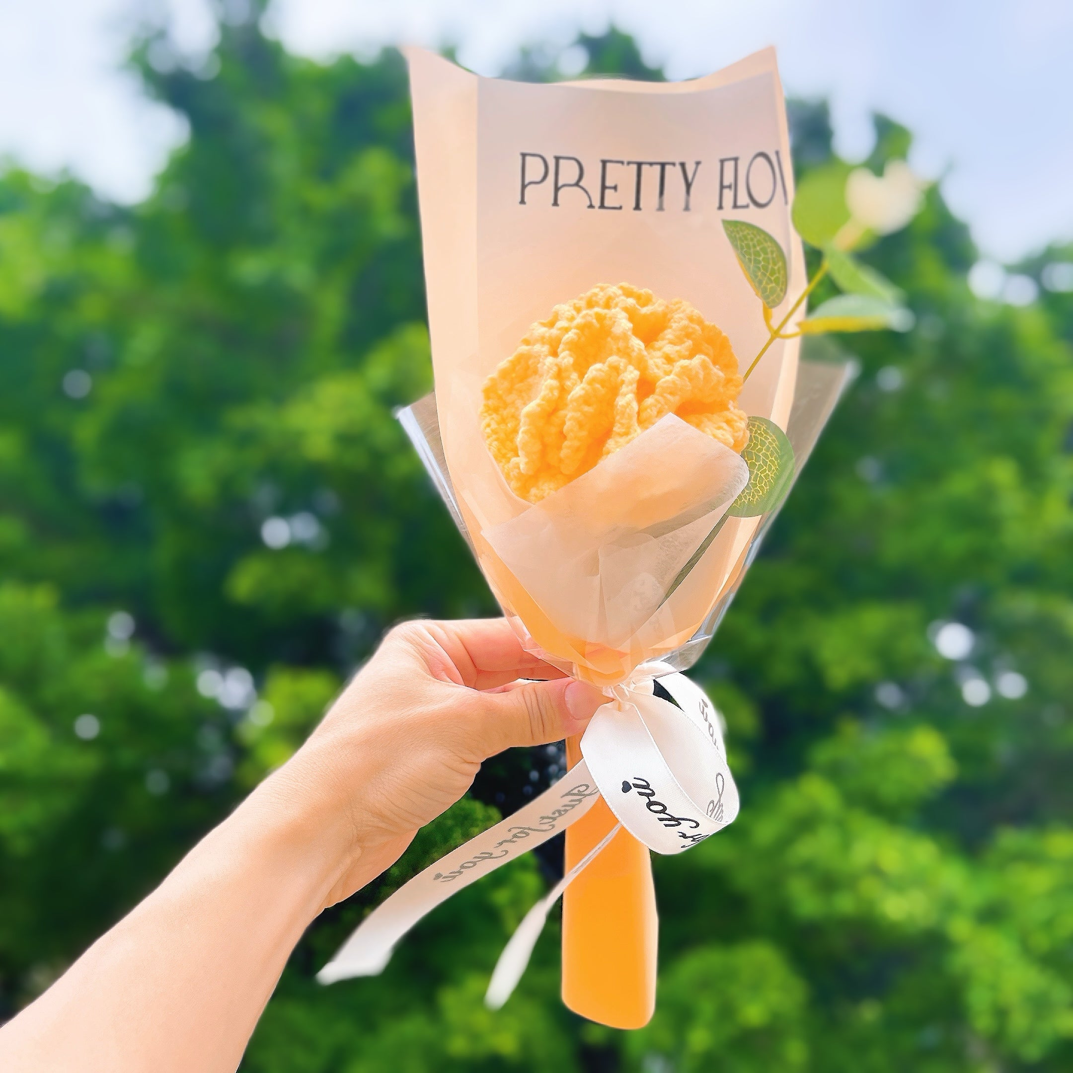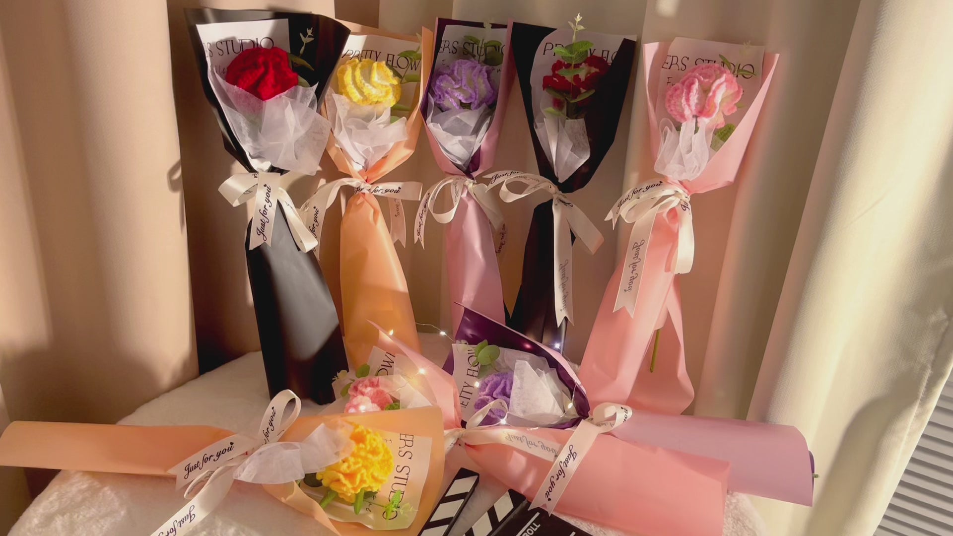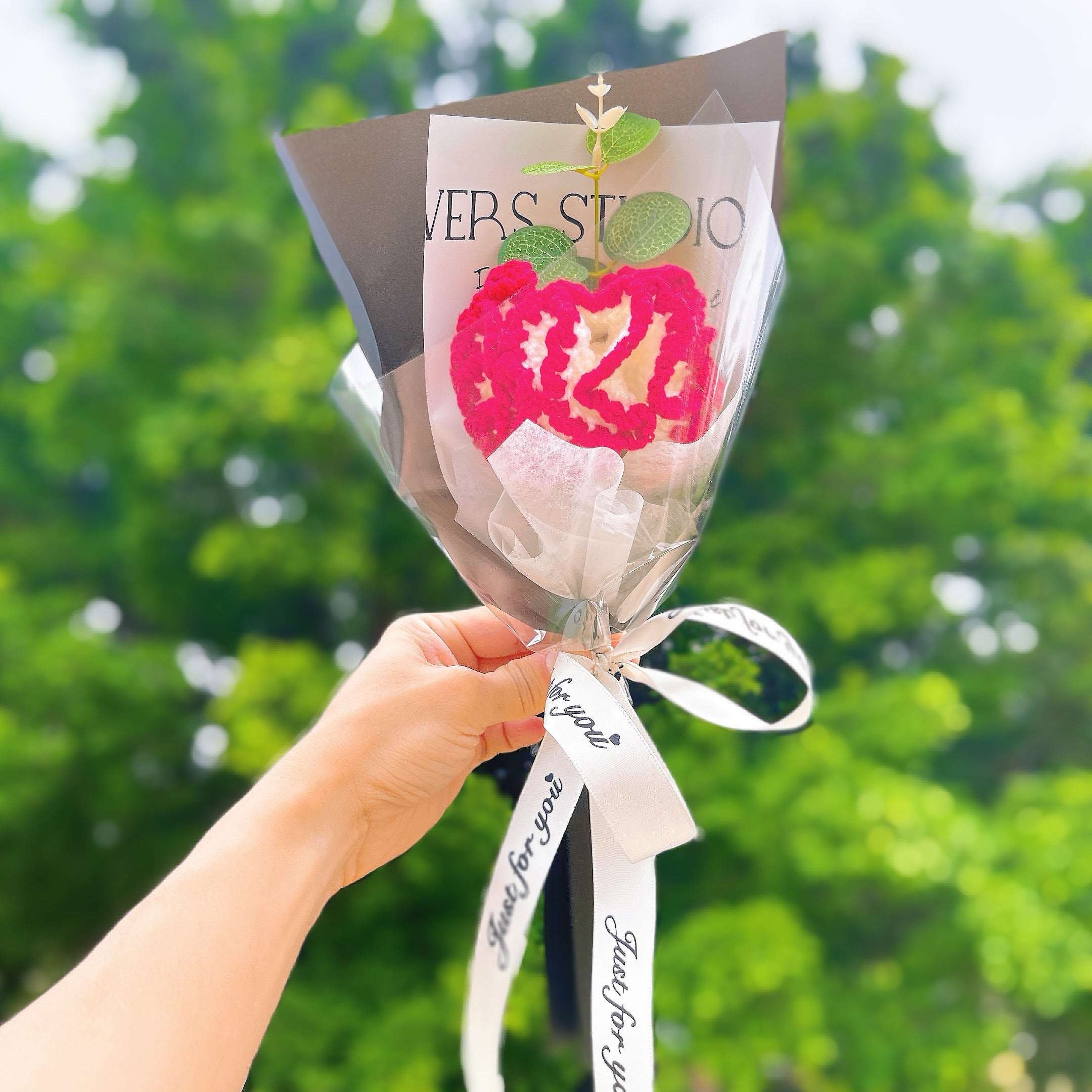 Celebrate the beauty and uniqueness of January birthdays with our stunning hand-crocheted single stem bouquet. This exquisite arrangement features eight vibrant shades of carnations, including pink, white-pink, red, white-red, purple, white-purple, yellow, and white-yellow.