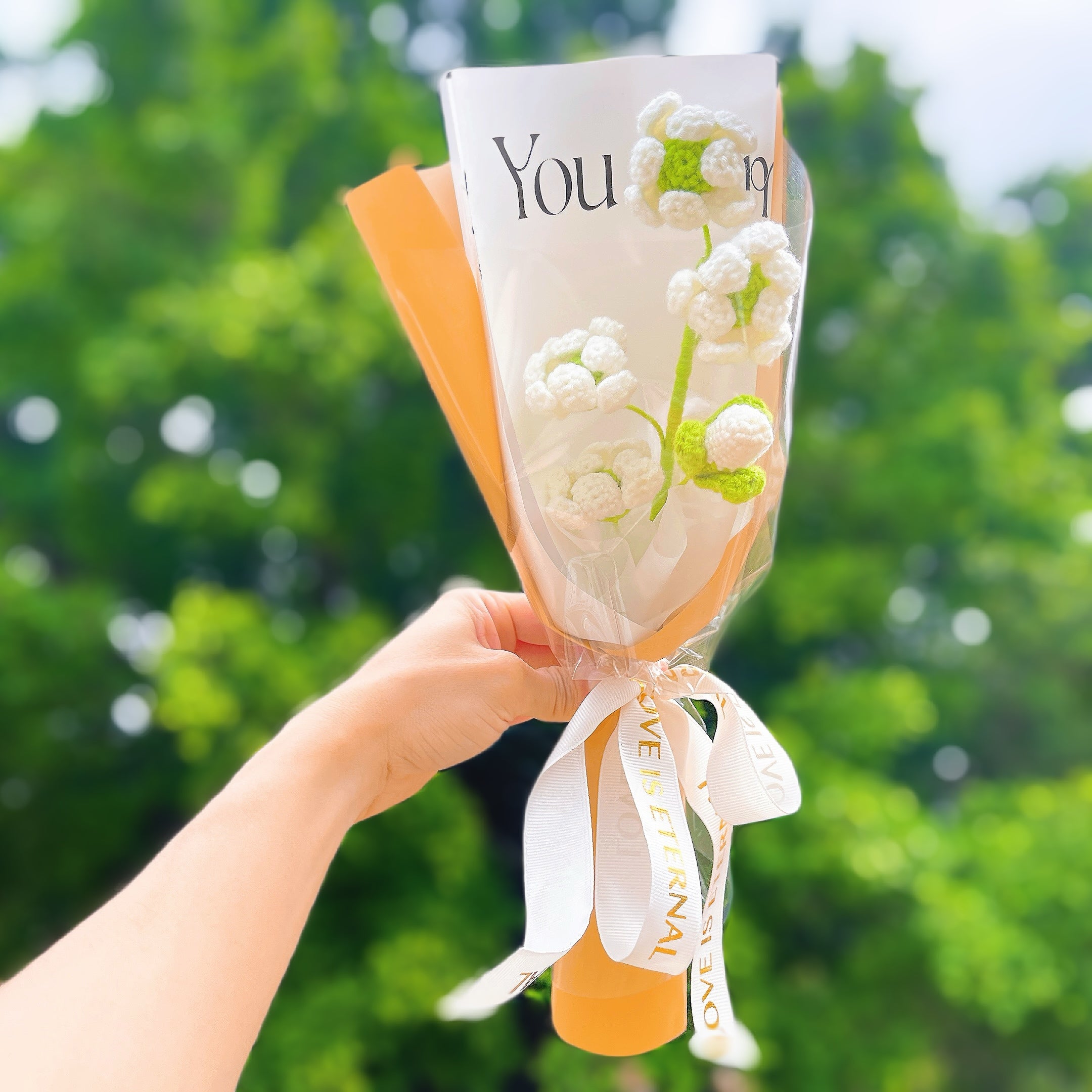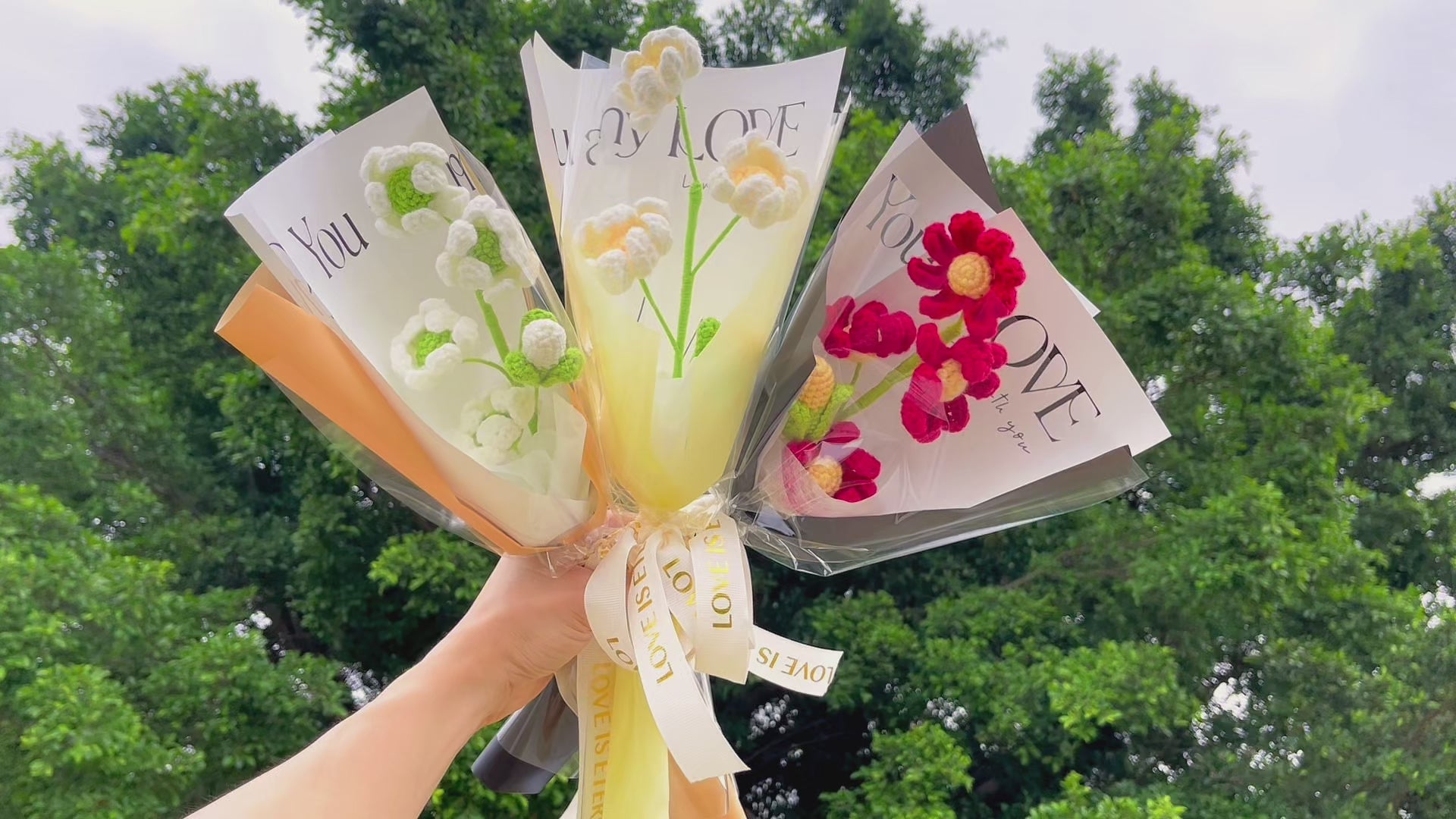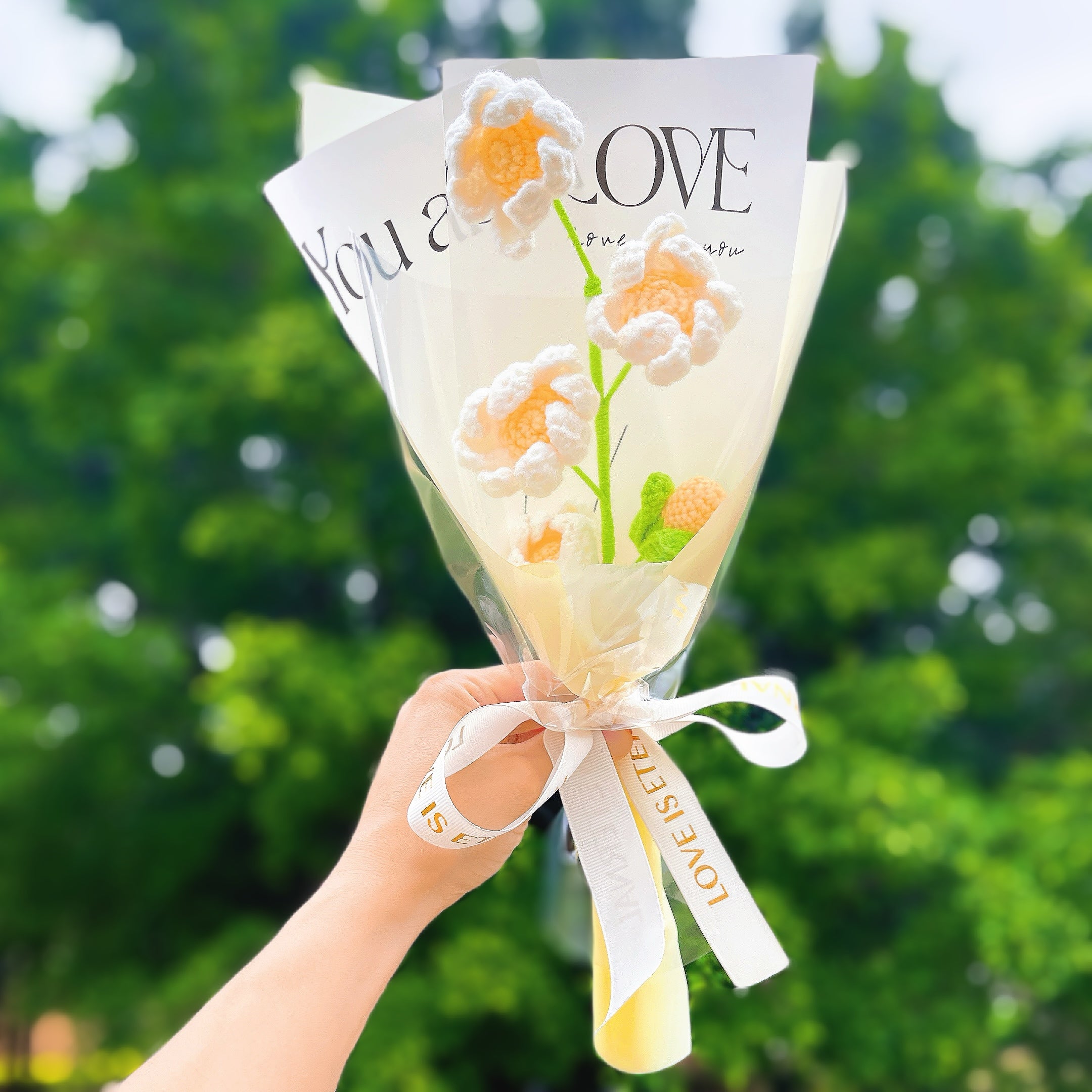 Treat someone special to a hand-crocheted Chrysanthemum (mum) bouquet this November! Our single-stem bouquets are available in three vibrant color combinations - red and yellow, white and green, and white and yellow - to perfectly complement any November birthday celebration.
